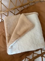 Une face fourrure sable doudou / une face motif broderie couleur chantilly